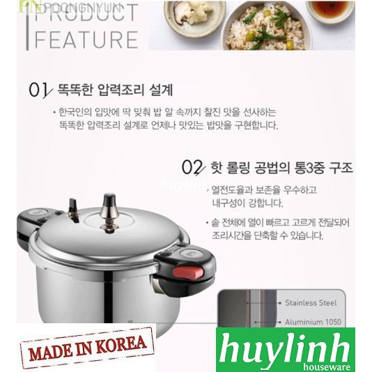 Giới thiệu [Mã ELHAMS5 giảm 6% đơn 300K] Nồi áp suất Inox bếp từ PoongNyun TCPPC-08 - 4.5 lít - Made in Hàn Quốc