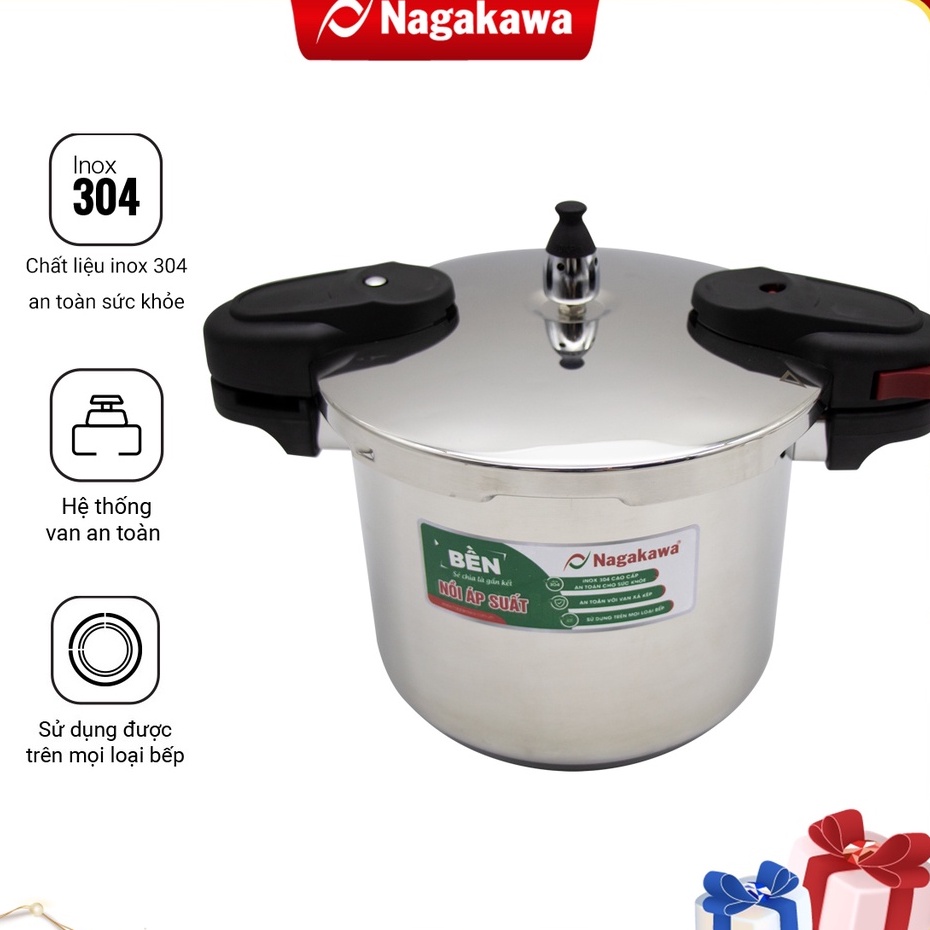 Giới thiệu [Mã ELHADEV giảm 4% đơn 300K] Nồi áp suất inox cao cấp Nagakawa NAG1452 (5L) - Dùng trên mọi loại bếp