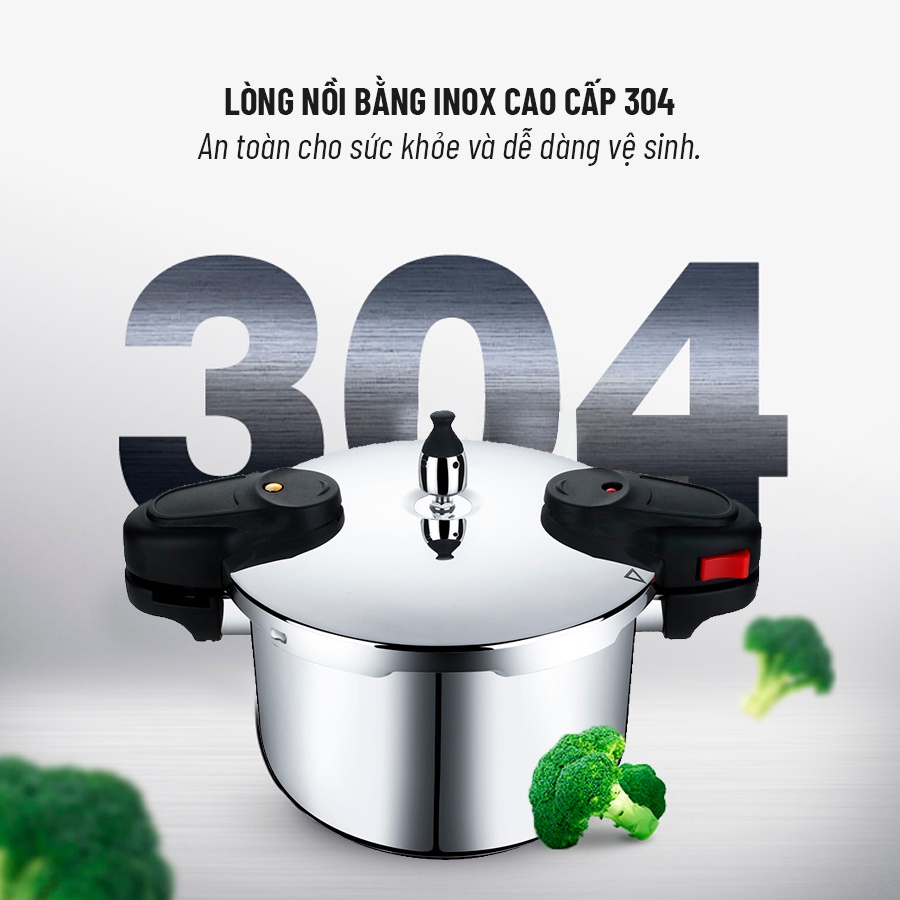 Điều đặc biệt ở nồi áp suất này có cấu tạo đáy từ 3 lớp giúp tản nhiệt tốt, giữ nhiệt lâu cho thức ăn được nấu chín đều cho món ngon gia đình đậm đà, chất lượng.