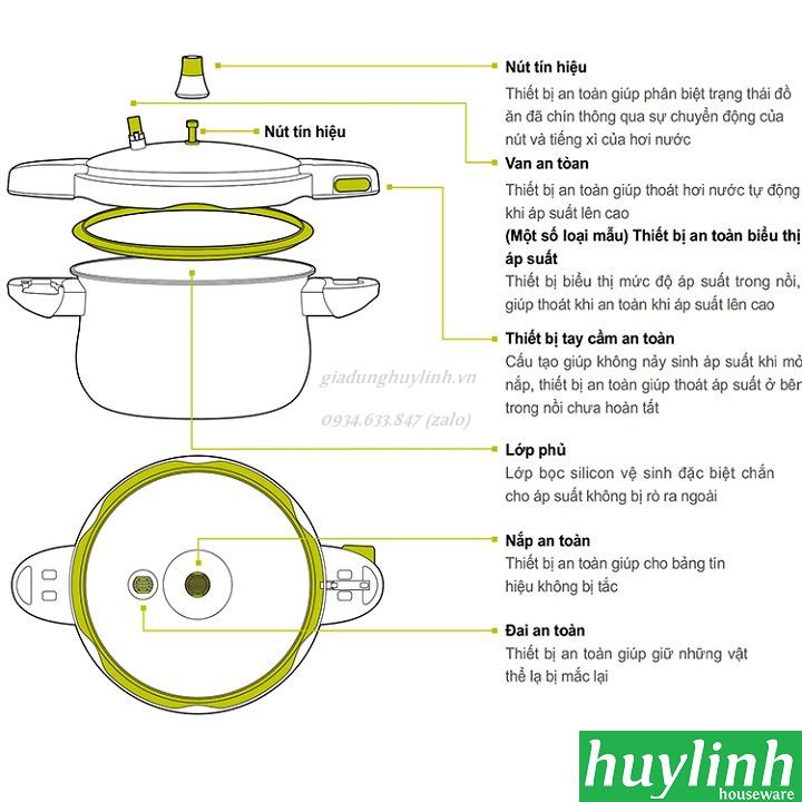 - Các bộ phận của nồi áp suất tách rời được giúp bạn thuận tiện cho việc vệ sinh.