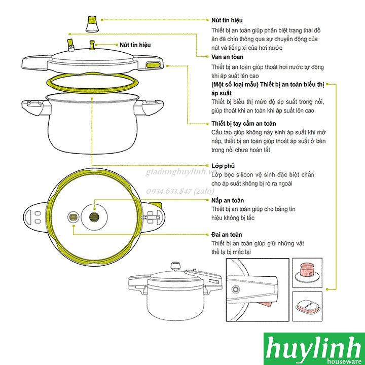 - Các bộ phận của nồi áp suất tách rời được giúp bạn thuận tiện cho việc vệ sinh.