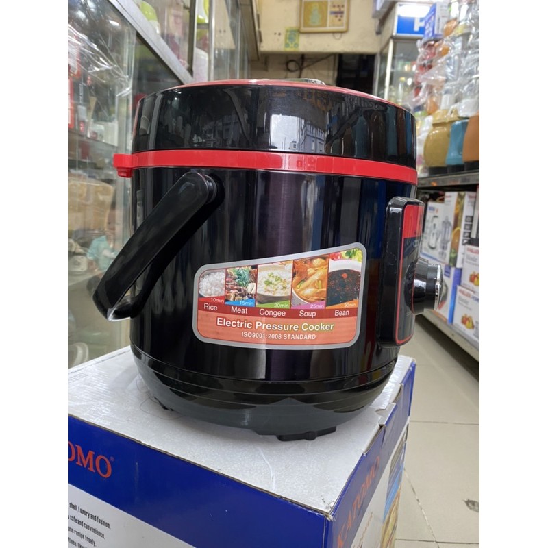 - Nồi áp suất điện đa năng Katomo KA-707 có công dụng nấu cơm, hầm thịt, hầm xương, đun nước, làm bánh...và đều được điều khiển bằng điện tử, núm cảm ứng, núp đóng mở an toàn tuyệt đối.Nồi áp suất điện Katomo KA-707 công suất 1000W giúp bạn tiết kiệm thời gian nấu đồng thời đảm bảo mùi vị và dinh dưỡng của thức ăn. Bạn chỉ mất 15 phút để hầm xương thay vì 2 giờ đồng hồ với nồi thông thường. - Cơ chế hoạt đông sử dụng điều khiển điện tử, núm cảm ứng- Lòng nồi bằng Inox, dễ dàng vệ sinh, dày 2.2mm, có độ bền cao, có khả năng chịu nhiệt và an toàn cho sức khỏe người tiêu dùng. - Nắp đóng mở khóa an toàn- Hệ thống sinh nhiệt được phủ sơn bảo vệ, chống dính, giúp sử dụng lâu bền.- Có thiết bị giới hạn áp suất dảm bảo an tòan cho người sử dụng so với các loại nồi áp suất thông thường- Bộ vi mạch điều chỉnh nhiệt tự động giúp tiết kiệm điện, được cài đặt chế độ nấu nhanh, dựa trên công nghệ áp suất điện, bạn có thể hầm xương giò chỉ trong vòng 15 phút mà vẫn giữ được hương vị của thực phẩm. Công suất lên đến 1000W giúp thức ăn chín nhanh, tiết kiệm thời gian- Nhiều chức năng nấu tự động như nấu cơm, canh, cháo, hầm… cho phép bạn chế biến nhiều món ăn dinh dưỡng cho gia đình- Thiết kế hệ thống điều khiển áp suất tự động phù hợp với lượng thức ăn có trong nồi. Khi áo suất lên quá cao, nồi sẽ tự động ngắt điện để đảm bảo an toàn cho người sử dụng- Nồi áp suất điện có thiết kế nút vặn điều khiển và đèn báo giúp bạn dễ dàng thao tác và theo dõi quá trình chế biến.