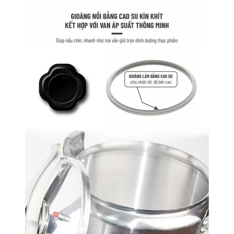 Cấu tạo siêu bền, công nghệ tiên tiếnBề mặt xử lý công nghệ tiên tiến giúp sản phẩm cứng và chắc. Nồi được làm bằng chất liệu hợp kim nhôm Anod, rất cứng, giúp dẫn nhiệt tốt, nấu ăn nhanh. Gioăng cao su dày, giữ kín hơi trong khi nấu, giúp nấu nhanh hơn. Độ bền rất cao, không ảnh hưởng bởi nhiệt độ.