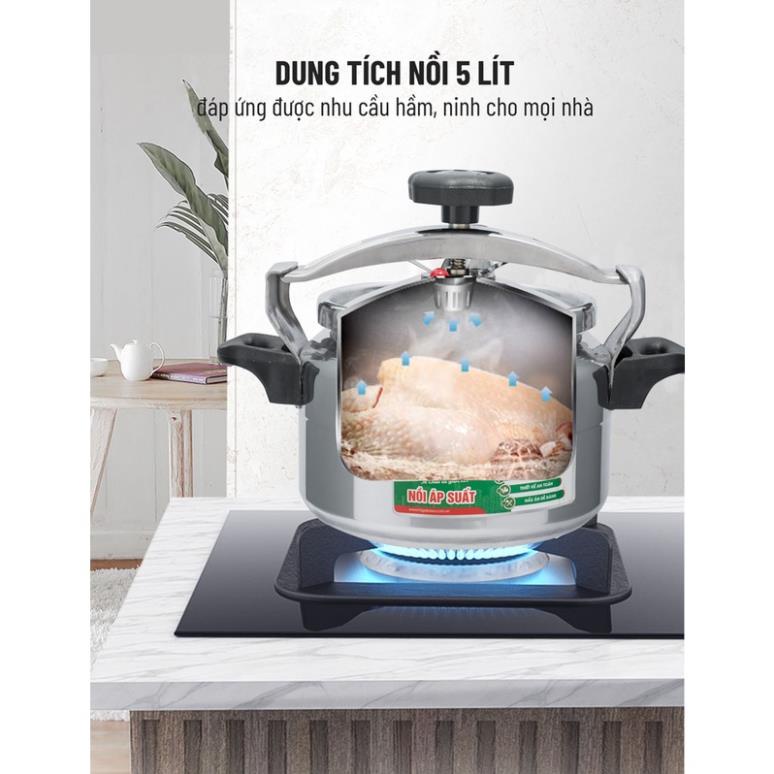 Với dung tích 5 lít, nồi áp suất Nagakawa NAG1451 hỗ trợ bạn nấu cháo, hầm xương, giò, nấu soup cho một gia đình với khoảng 5-6 người ăn.