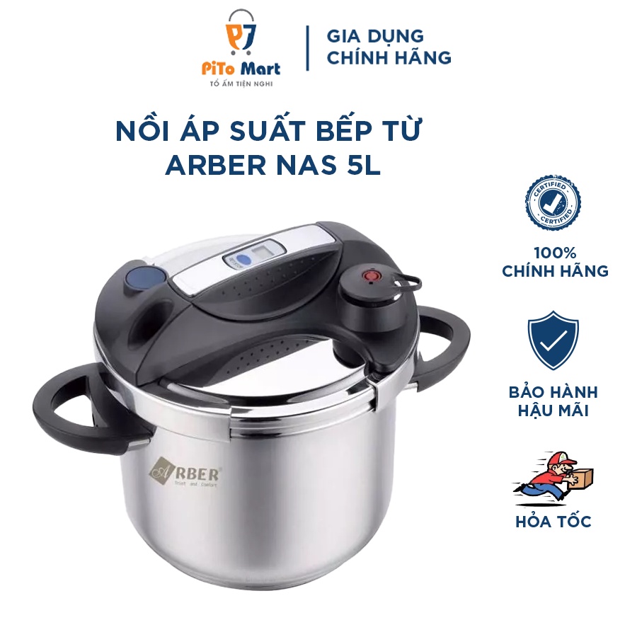 Nồi áp suất, Nồi áp suất đa năng ARBER NAS 5L dùng cho mọi loại bếp, ninh kĩ hầm nhừ, giữ trọn vị ngon thực phẩm