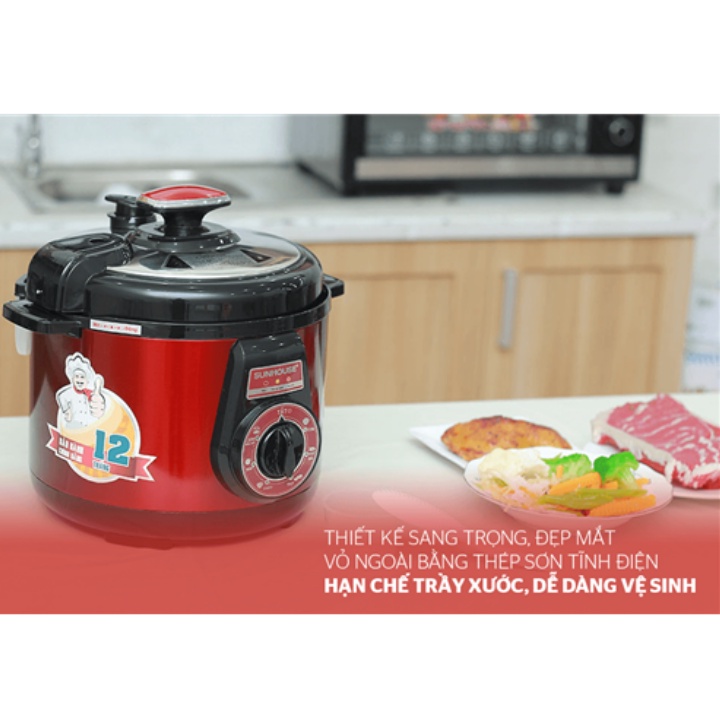 Giới thiệu Nồi áp suất - Nồi áp suất điện đa năng sunhouse công suất 900W, nấu nhanh, chống dính, dung tích 5L - Bảo hành 12 tháng