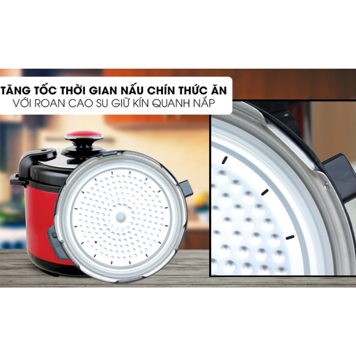 - An toàn cho người sử dụng tự động xả áp khi áp suất trong nồi quá cao, khóa chặt nắp khi trong nồi vẫn còn nhiều áp suất, tự động ngắt khi nhiệt độ quá cao để đảm bảo độ bền cho sản phẩm và an toàn cho người sử dụng