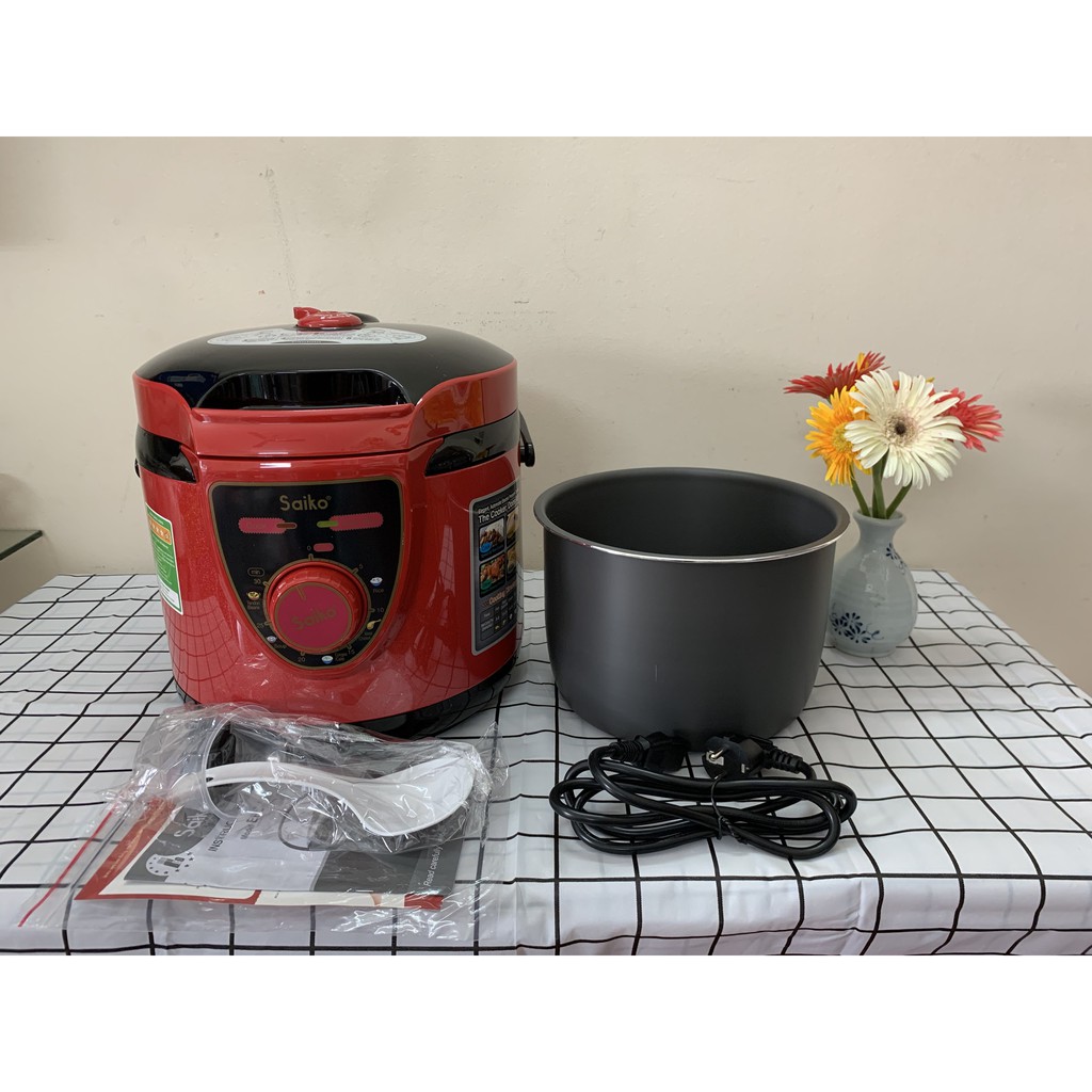 ✔ Nồi áp suất điện Saiko có hai loại, loại cơ và loại điện tử. Loại cơ có nút vặn bằng tay xoay tròn để điều chỉnh thời gian nấu theo các chế độ nấu đã được cài đặt sẵn, loại điện tử có các nút bấm điện tử và màn hình để theo dõi.