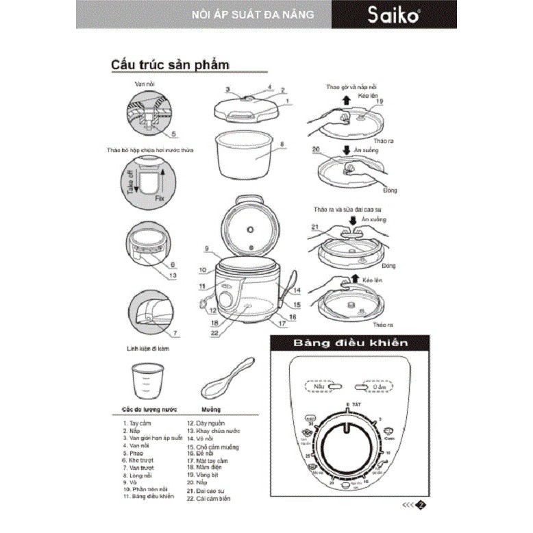 NỒI ÁP SUẤT SAIKO QUAI XÁCH 2.2 LÍT EPC 622Chi tiết sản phẩm