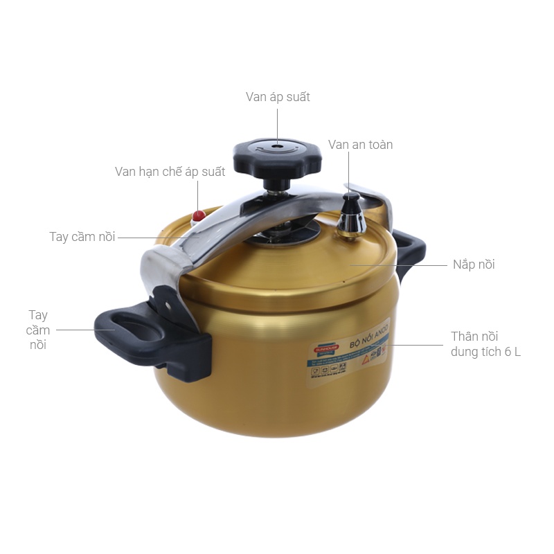 Sản phẩm được trang bị van an toàn, tự động xả áp khi áp suất trong nồi vượt quá mức cho phép, đảm bảo an toàn cho người sử dụng. Ngoài ra, với công nghệ anod tiên tiến, sản phẩm có độ cứng vượt trội, chống va đập cực tốt, hạn chế tối đa việc phai màu, móp méo hay biến dạng qua thời gian sử dụng.