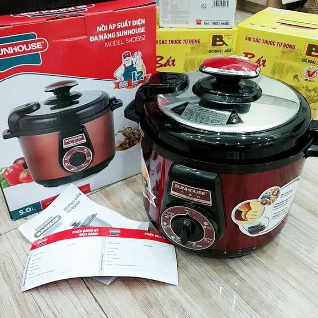 Thông số kĩ thuật Nồi áp suất Sunhouse SHD1552 dung tích 5L tự động xả khi áp suất cao, tự ngắt khi quá nhiệt, an toàn khi sử dụng: