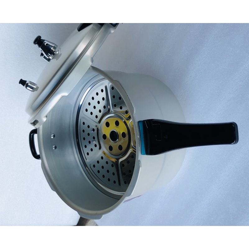 Nồi áp suất 1 tay gạt có dung tích 5 L,có 2 van phụ và 1 van xả chính trên vung.