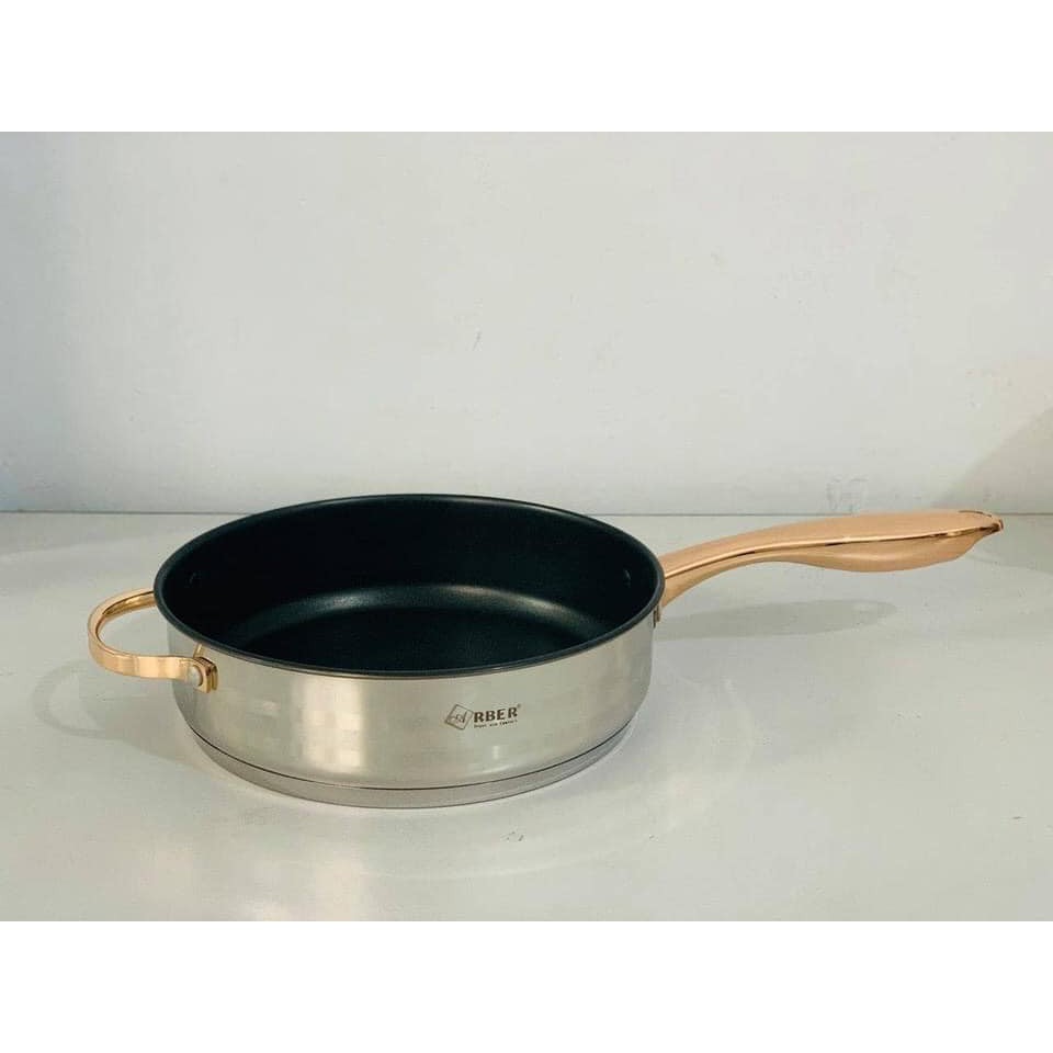 Bộ nồi từ chảo 5 chiếc cao cấp ARBER làm bằng chất liệu thép không gỉ, đáy bộ nồi 3 đáy siêu bền khi sử dụng, bộ nồi tiếp xúc nhiệt nhanh, êm, tản nhiệt đều khi nấu. Bộ nồi từ 5 chiếc cao cấp ARBER