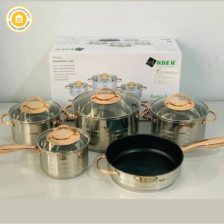 Giới thiệu Bộ Nồi ARBER 5 Món BRASS - Có Nắp Vung Kính