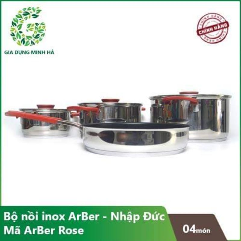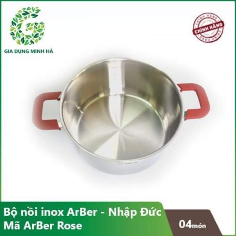 Bộ nồi từ chảo 4 chiếc ARBER ROSY cao cấp nắp đỏKiểu dáng sang trọng xếp được vào với nhau, gọn gàn ARBER làm bằng chất liệu thép không gỉ, đáy bộ nồi 3 đáy siêu bền khi sử dụng, bộ nồi tiếp xúc nhiệt nhanh, êm, tản nhiệt đều khi nấu.