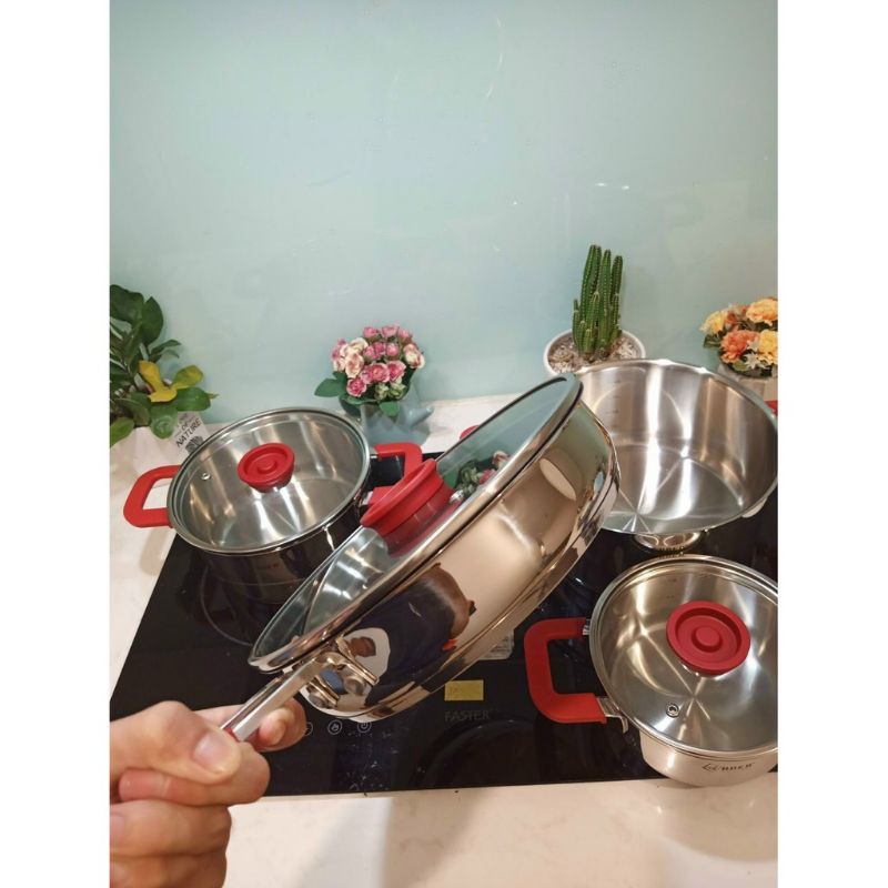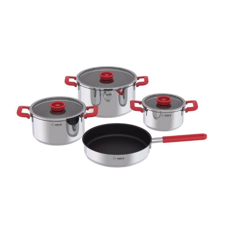 ⚡ Bộ nồi bếp từ chảo 4 chiếc ARBER ROSY cao cấp nắp đỏ. Sản phẩm sử dụng được với các loại bếp cả bếp điện từ, bếp từ