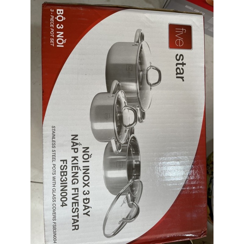 Bộ nồi bếp từ inox Fivestar 3 đáy nắp kính quai tán đinh 16,20,24cmTHÔNG TIN SẢN PHẨM: