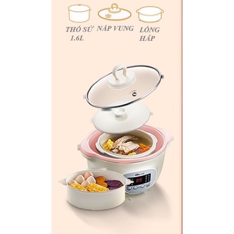 Nồi Bear 1.6l kèm 2 thố sứ, có lồng hấp