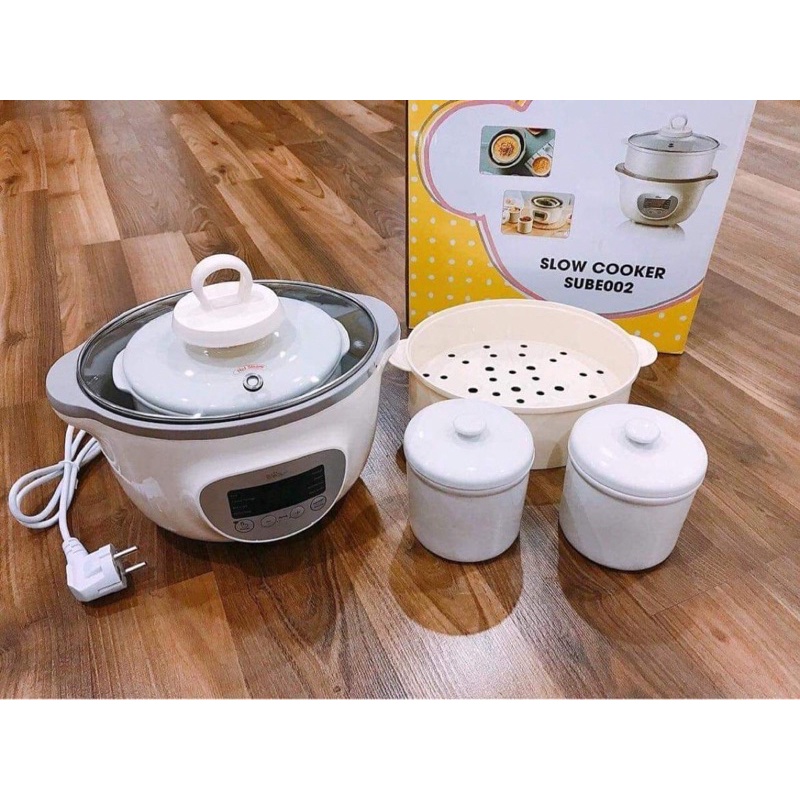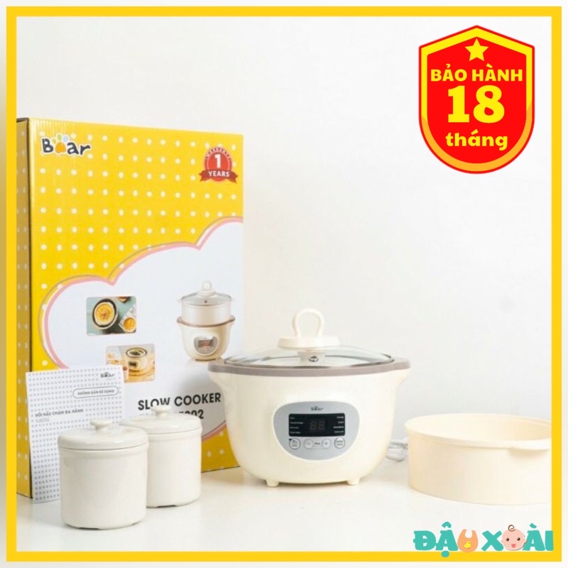 Nồi Bear 1.6l nấu cháo chậm ăn dặm cho bé( 1 thố to, 2 thố nhỏ) Bản quốc tế