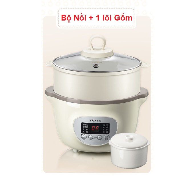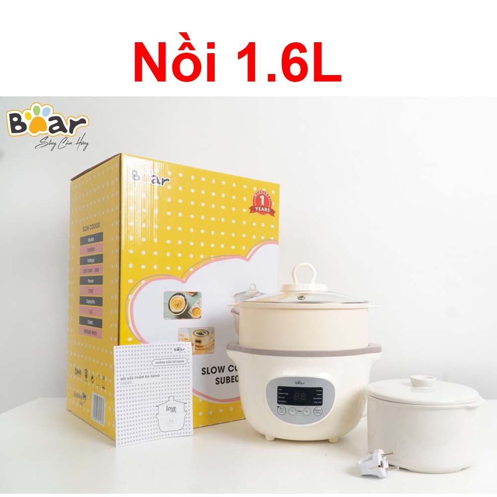 Nồi Bear 1.6L,Nồi nấu cách thủy Bear 1 6 Lít bản Quốc Tế SUBE002 kèm lồng hấp Nồi nấu hấp ninh hầm cách thủy Cho bé
