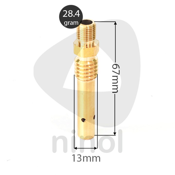 - Quy cách ren: có 2 ren ngoài kích thước lần lượt là 13 mm và 9.6 mm. Ren trong có kích thước là 5 mm