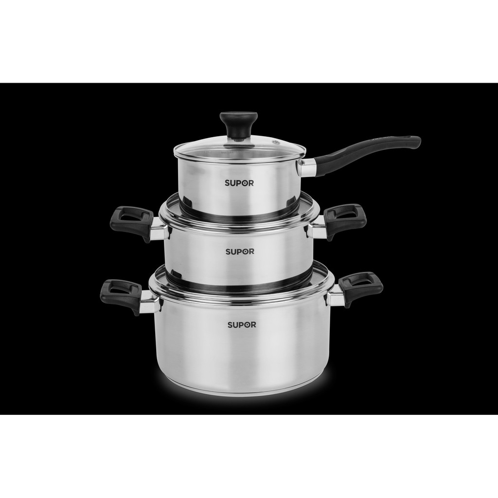 Bộ nồi bếp từ inox cao cấp 100% chất liệu 18/10 Supor 16-20-24cm hàng chính hãng H20211-T1