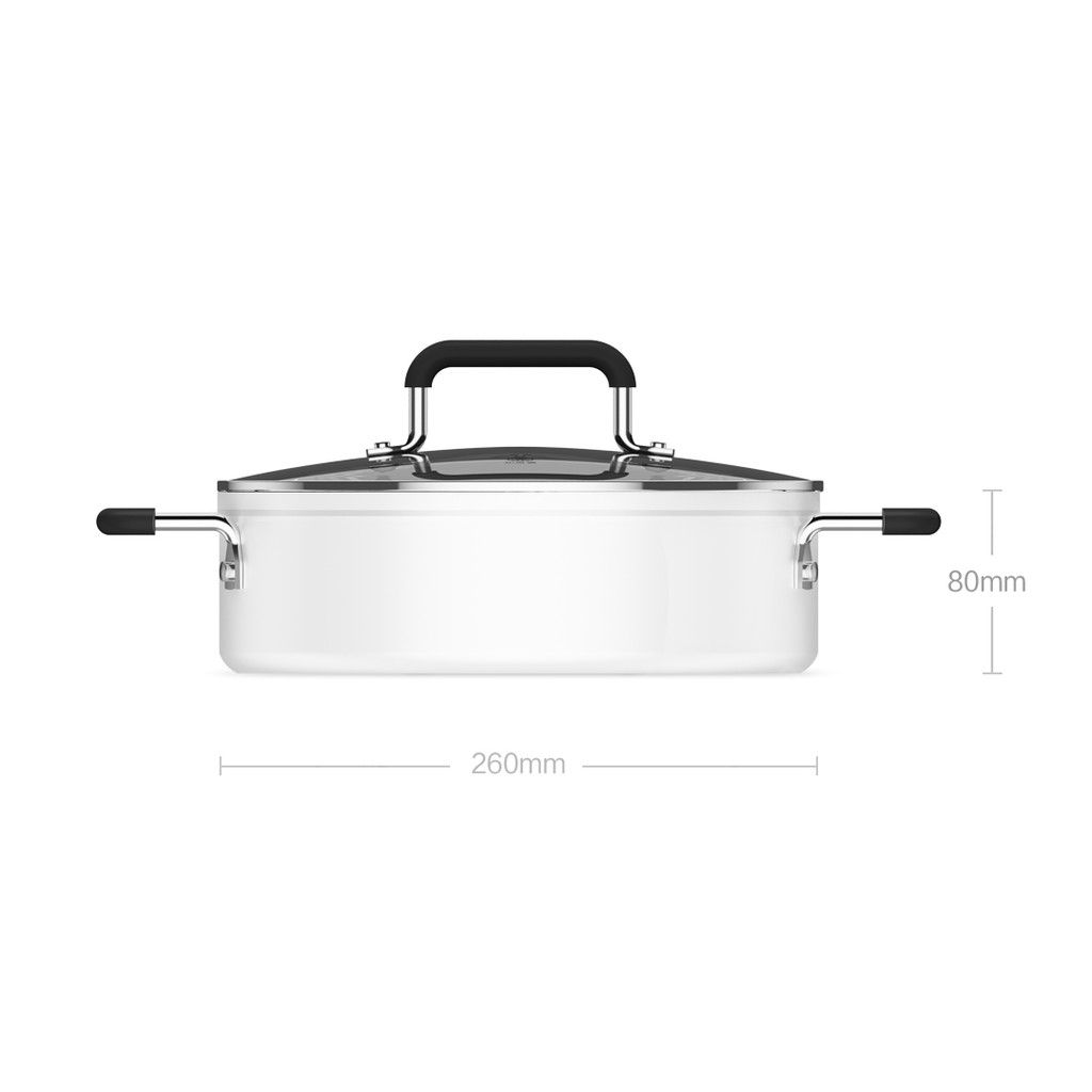 Vì là sản phẩm đi kèm với bếp từ Mijia nên nồi có kích thước 260 x 80mm hoàn toàn vừa vặn khi đặt trên bếp. Cùng với đó lớp sơn tráng men trắng đồng bộ với màu của bếp, tạo nên một thể thống nhất hoàn chỉnh. Lớp vật liệu này có độ biền khá cao, có thể chịu được nhiệt độ đun nóng của bếp mà không bị ảnh hưởng gì.