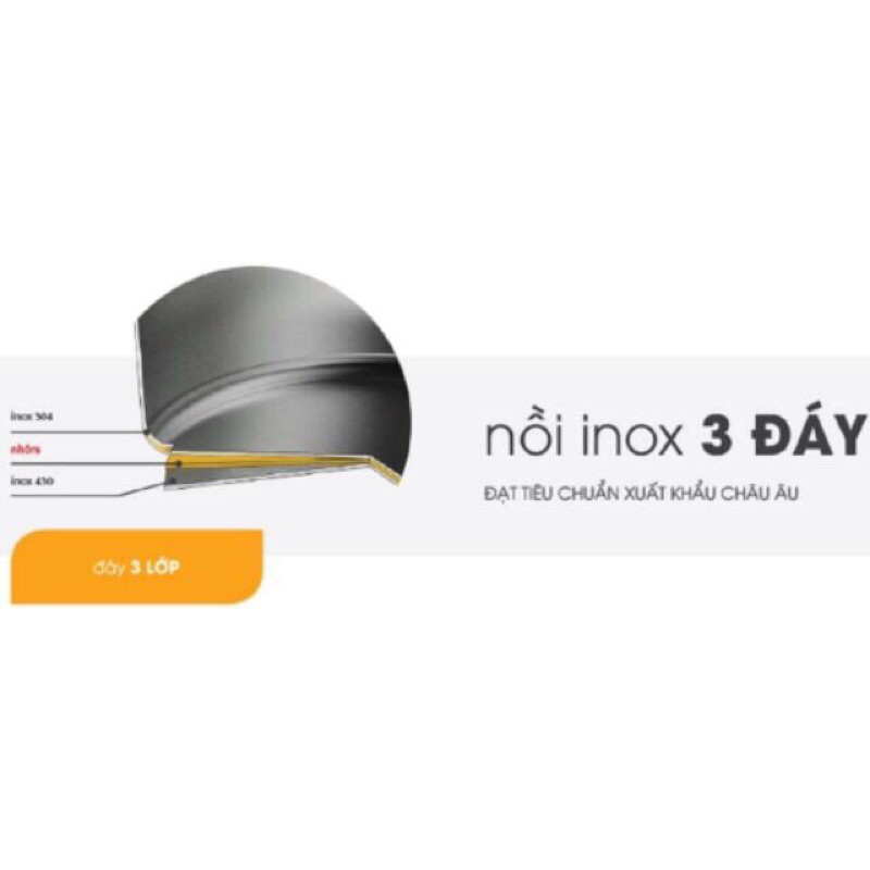 - Lớp đáy ngoài cùng của nồi là lớp inox 430 hay thép không gỉ 430 theo chuẩn của học viện gang thép Mỹ có đặc tính dẫn từ giúp cho nồi có thể sử dụng trên tất cả các loại bếp: bếp từ, bếp ga, bếp hồng ngoại...