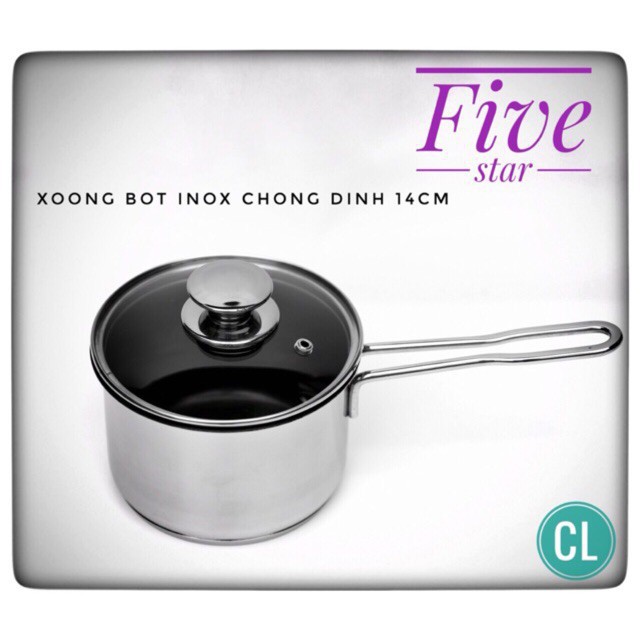 Giới thiệu sản phẩm xong bột chống dính 3 đáy Fivestar 12, 14cm nắp kính dùng bếp từVới sản phẩm xong bột Fivestar 12, 14 các bà mẹ sẽ hoàn toàn yên tâm và hài lòng khi chăm sóc sức khỏe con yêu của mình. Nồi nấu bột Fivestar 12, 14 được sản xuất tại Việt Nam theo tiêu chuẩn Hàn Quốc. Chất liệu nồi bằng inox dày, bền, đẹp. Chất liệu nồi bằng inox 3 đáy đảm bảo không bị khê, cháy như những sản phẩm nồi inox 1 đáy khác.