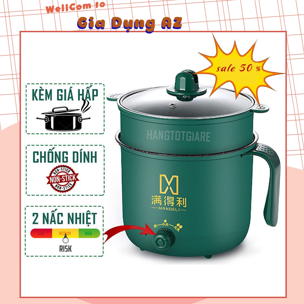 Nhà cửa & Đời sống > Dụng cụ nhà bếp > Nồi || Nồi ca lẩu mini nấu cơm xào mì rán đa năng có tay cầm 2 nấc nhiệt tạng kèm giá hấp 1.8l AZ 2706727598Còn hàng