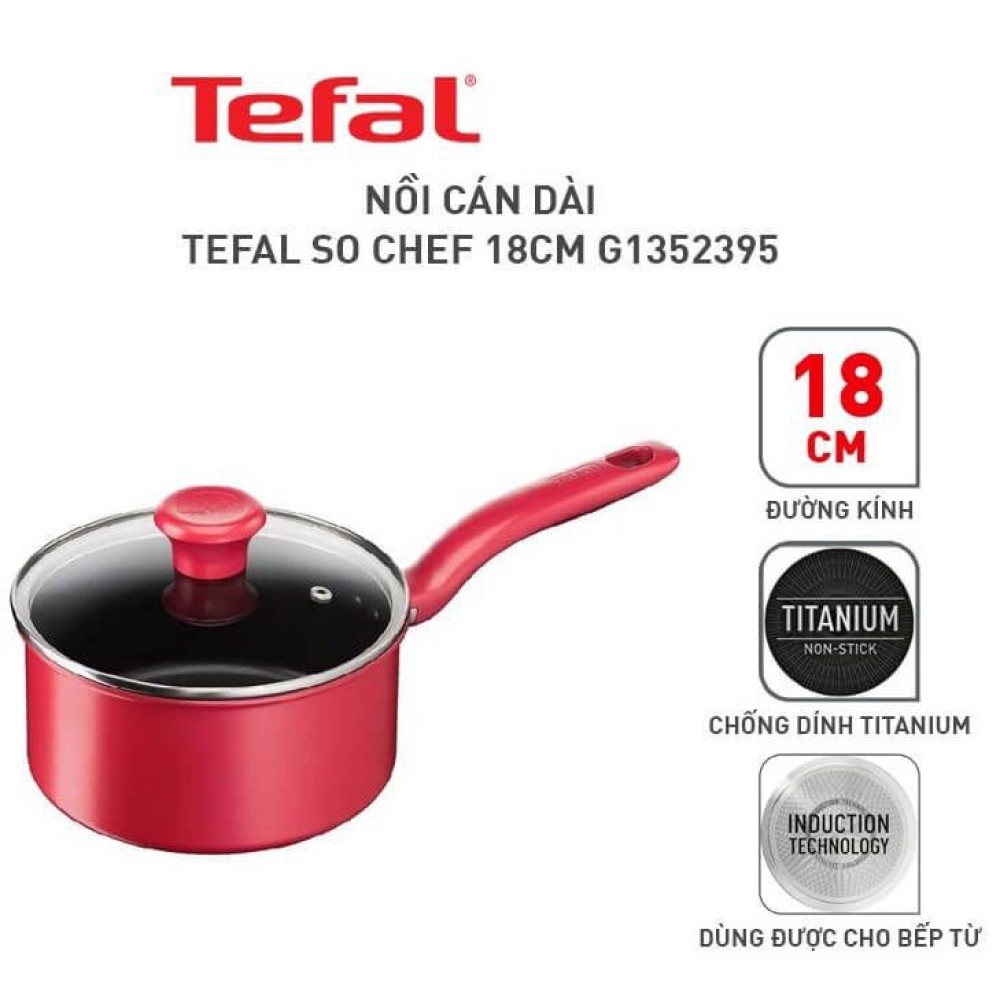 Nhà cửa & Đời sống > Dụng cụ nhà bếp > Nồi || Nồi cán dài / Quánh chống dính đáy từ Tefal So Chef G1352395 18cm có nắp (Đỏ)Còn hàng