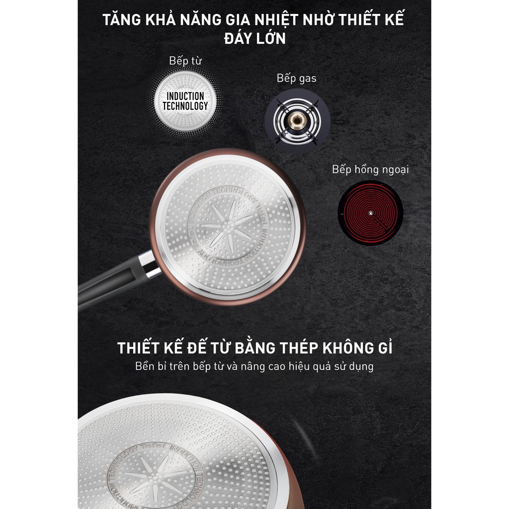 - LỚP PHỦ TITANIUM Bền chắc với hơn 16,000 lần chà nhám.- Lớp phủ Titanium nonstick mang lại khả năng chống dính tuyệt vời và độ bền vượt trội, có thể sử dụng ít dầu khi nấu ăn.