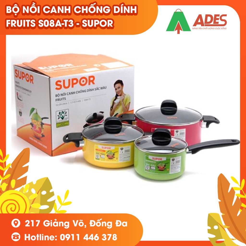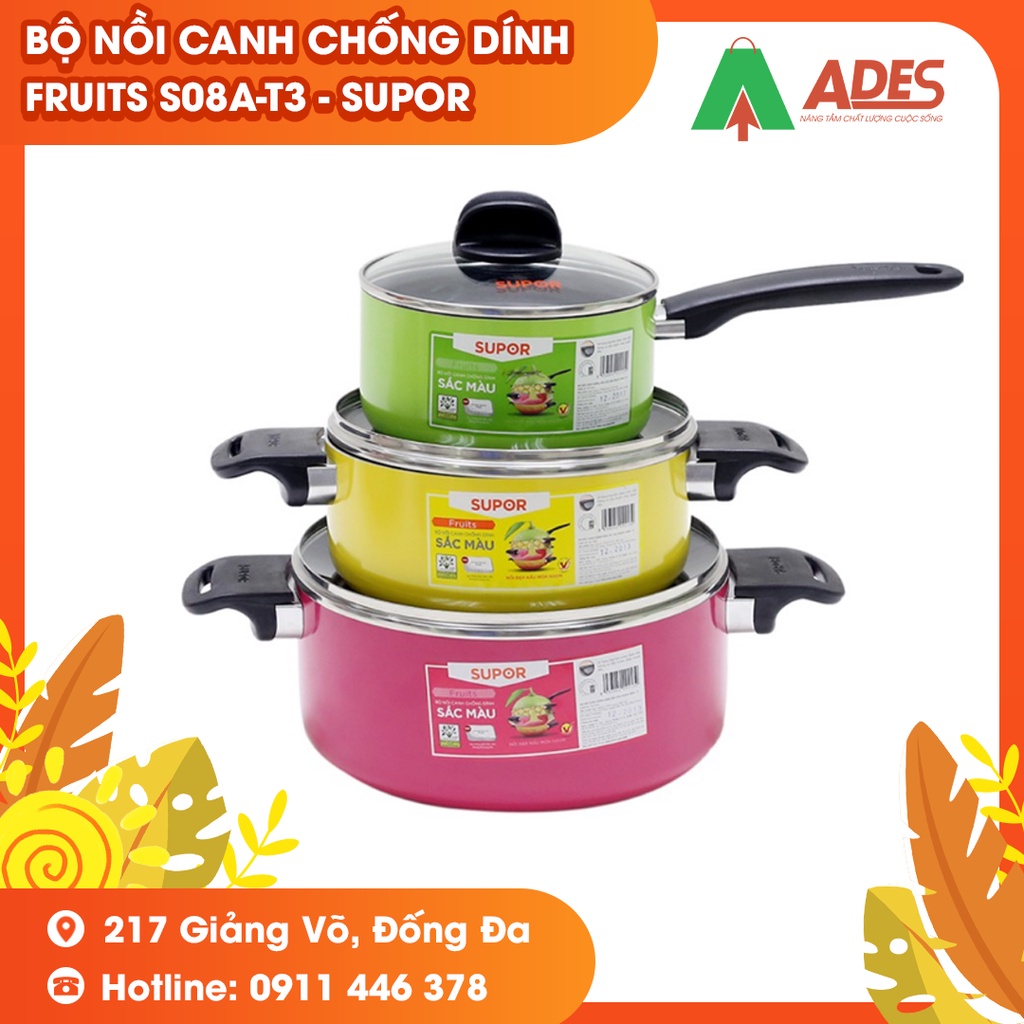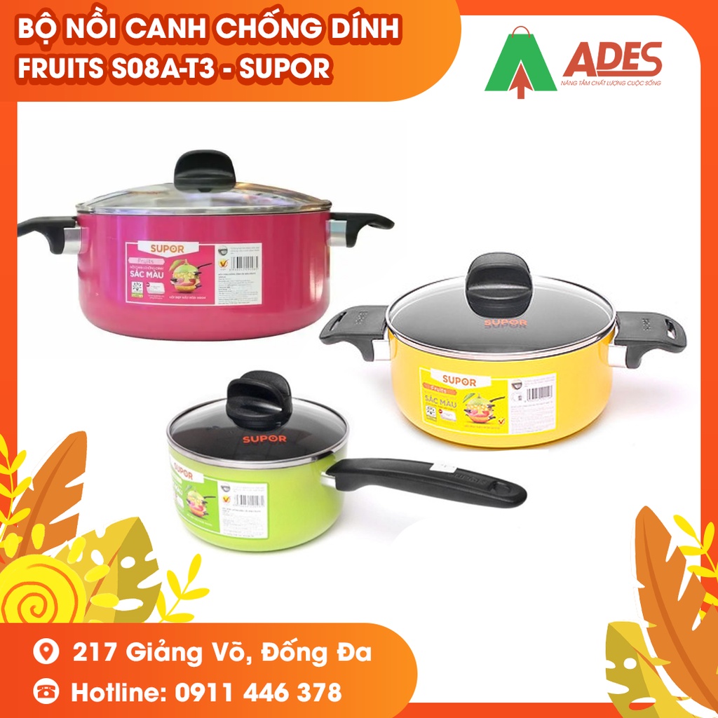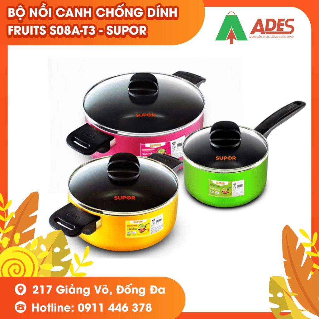 Bộ nồi canh chống dính sắc màu Fruits S08A-T3 - Supor - Chính hãng HOT 2022