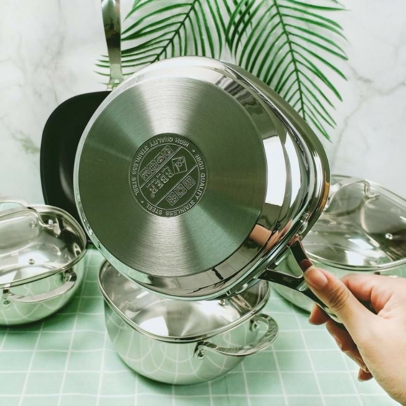 👉Đáy bộ nồi 3 đáy siêu bền khi sử dụng, bộ nồi tiếp xúc nhiệt nhanh, êm, tản nhiệt đều khi nấu
