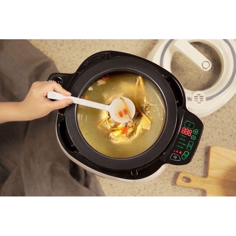 - Khi ở góc thẳng, Nồi có chức năng như một nồi gang (có thể hấp, ninh, kho, hầm, nấu cơm, nấu súp) theo chế độ nấu, nhiệt độ và thời gian tuỳ chọn trên bảng giao diện điện tử dễ sử dụng.