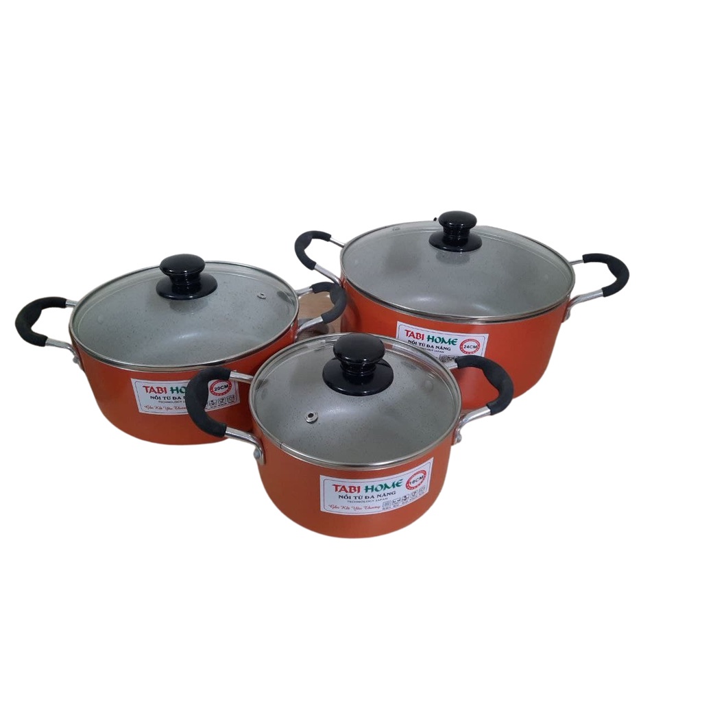 💦💦Bộ 3 Nồi CERAMIC cấu tạo đáy 3 lớp sản xuất tại Việt Nam dựa trên dây chuyền và công nghệ hiện đại của Hàn Quốc. Bộ nồi gồm 3 chiếc với kích thước khác nhau, được làm từ chất liệu inox cao cấp, cấu tạo đáy 3 lớp , có thể sử dụng được trên bếp từ, bếp hồng ngoại....