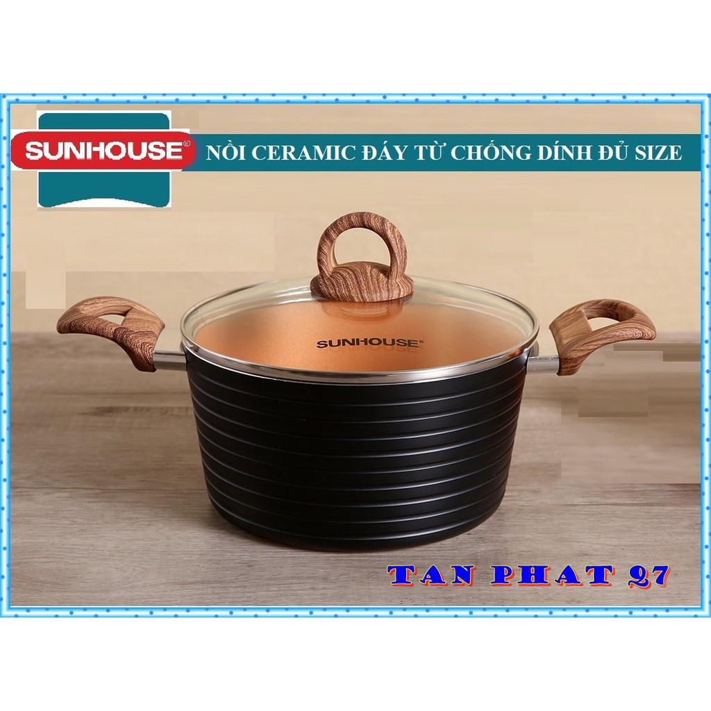 Nồi ceramic đáy từ SUNHOUSE đủ size( CÓ CHỐNG DÍNH)