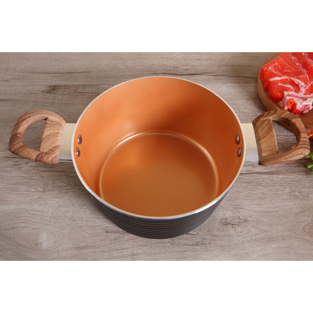 Kích thước: Đường kính lòng nồi: 18 – 20 – 24 (cm)Chiều cao thân nồi: 8 – 8.5 – 12 (cm)