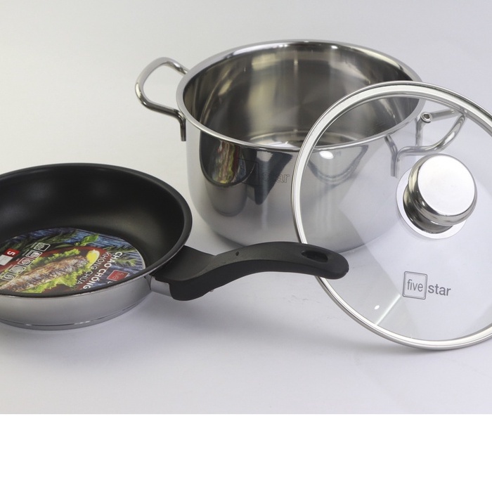 Nhà cửa & Đời sống > Dụng cụ nhà bếp > Nồi || Bộ nồi chảo 3 đáy inox 430 cao cấp FiveStar Standard 2 món nắp kính 16/20/24 HÀNG CHÍNH HÃNG BẢO HÀNH 5 NĂMCòn hàng