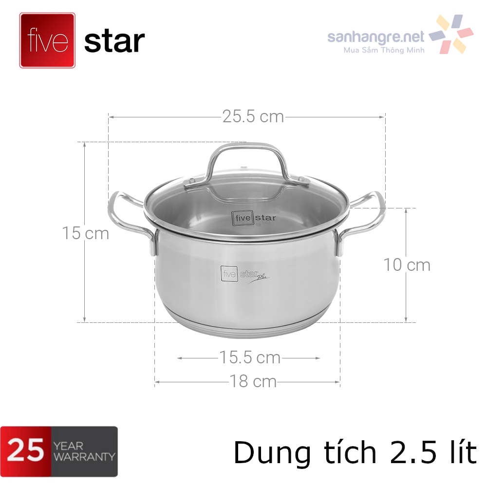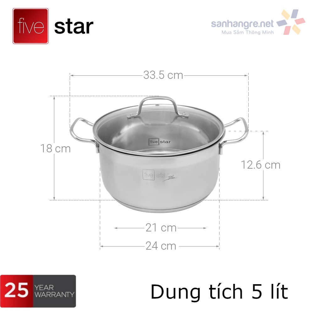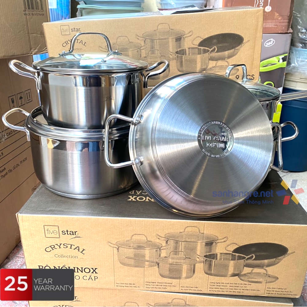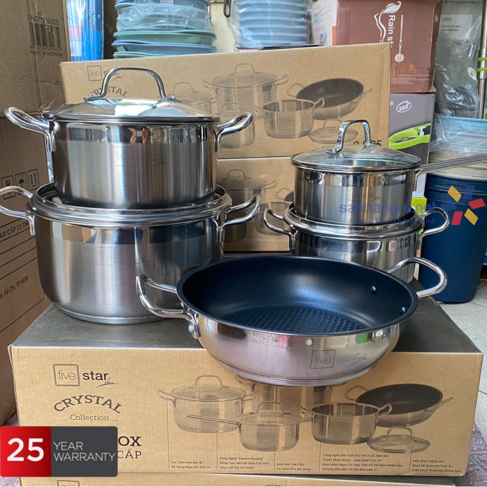 Nhà cửa & Đời sống > Dụng cụ nhà bếp > Nồi || Bộ Nồi, Chảo 5 Đáy Inox 304 Fivestar Plus FPB55D001 Vung Kính Đáy Từ, hàng chính hãng Bảo Hành 25 NămCòn hàng