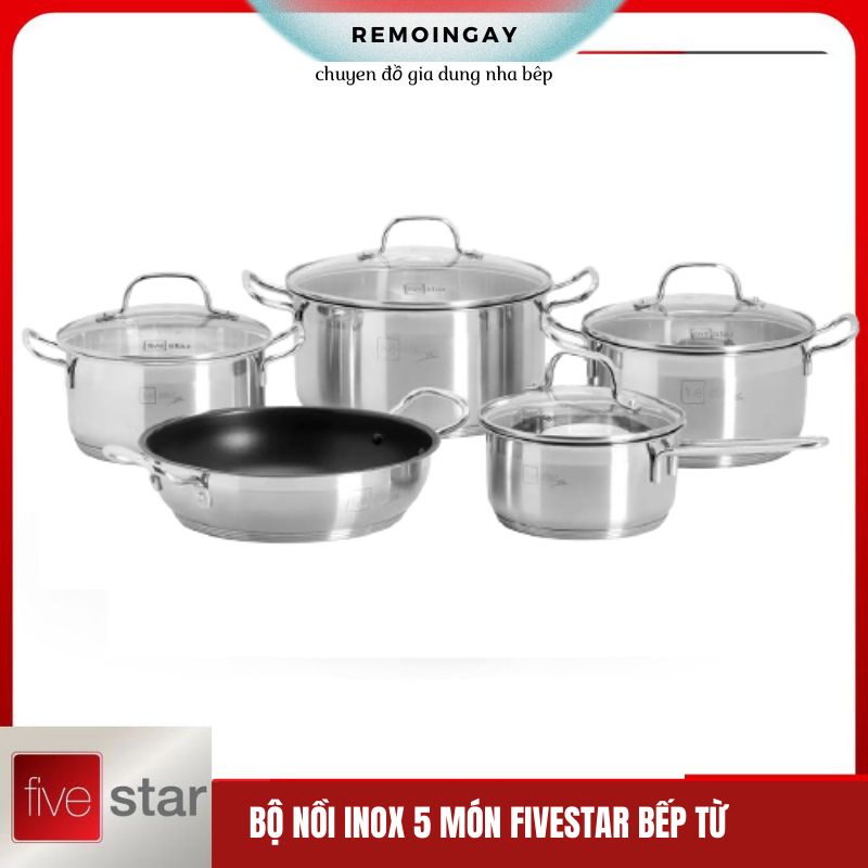 - Bộ nồi inox 305 Fivestar 5 đáy FPB55D001 thiết kế bền đẹp, an toàn với sức khỏe