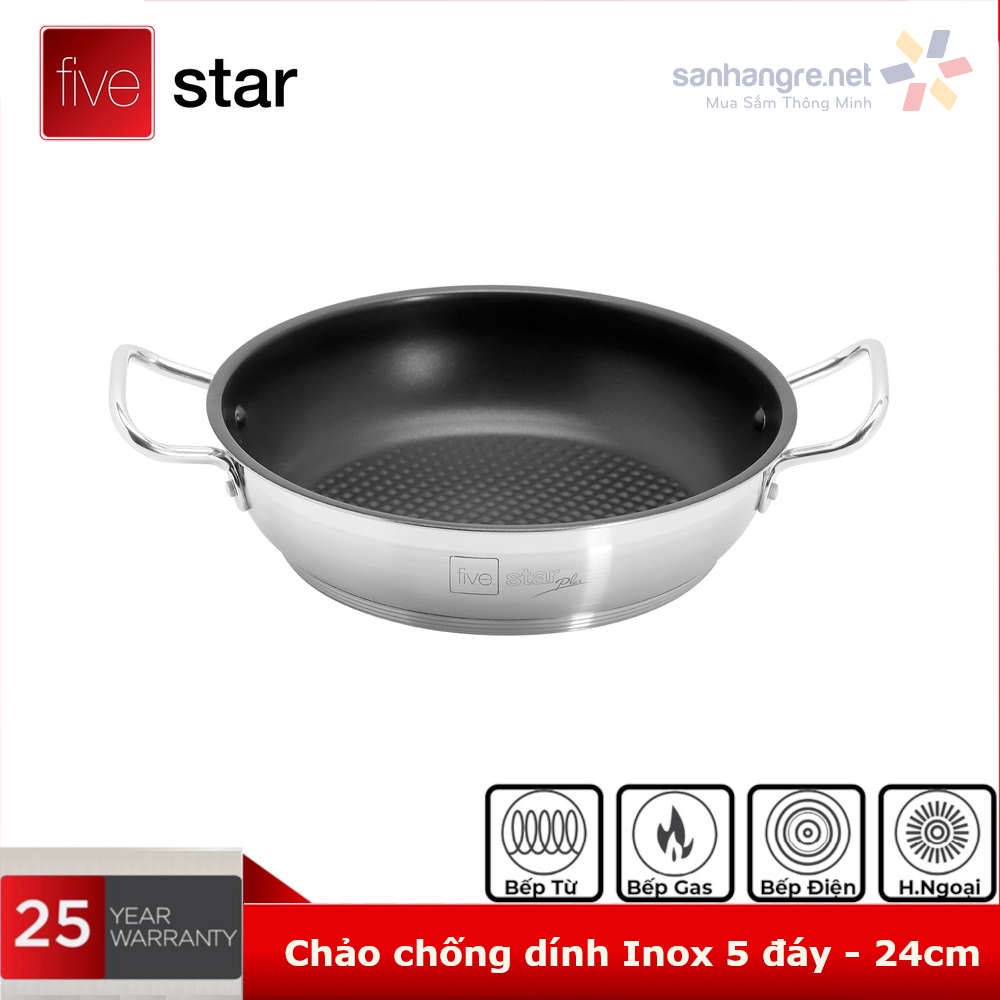 Bộ Nồi, Chảo 5 Đáy Inox 304 Fivestar Plus FPB55D001 Vung Kính Đáy Từ, hàng chính hãng Bảo Hành 25 Năm