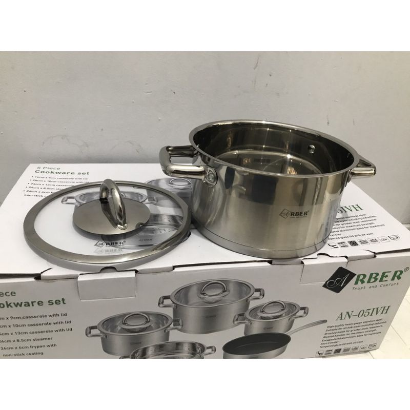 Bộ nồi chảo 5 món ARBER AN05IVHChất liệu: Inox 304.