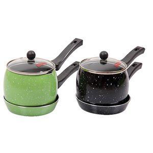 Bộ nồi gồm 1 nồi đường kính 10cm, có vung kính kèm theo và 1 chảo đường kính 12cm. Kích thước trên phù hợp để bạn chuẩn bị khẩu phần ăn cho bé trong nhiều bữa.