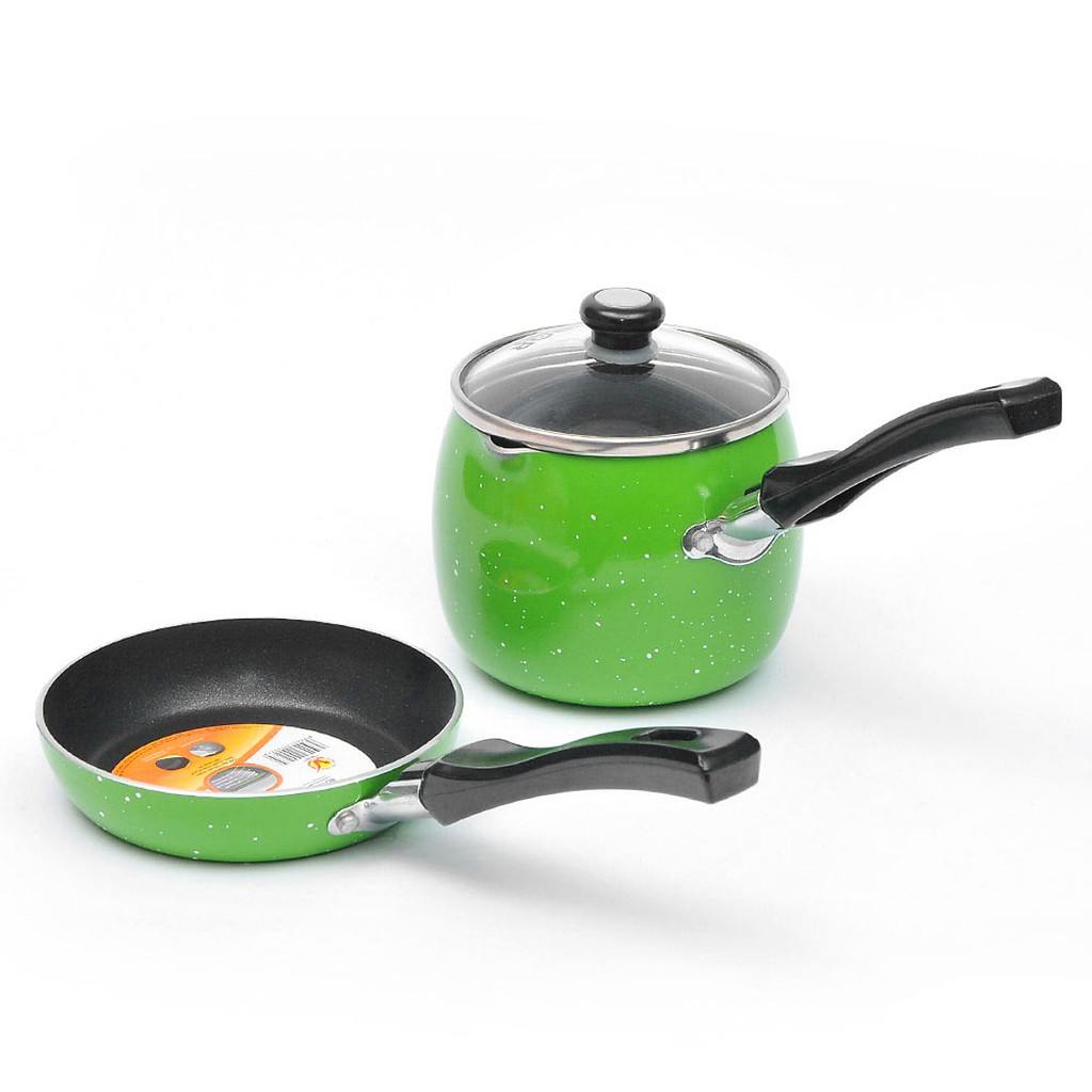 BỘ NỒI CHẢO CHO BÉ ĂN DẶM PHỦ MEN CHỐNG DÍNH VUNG KÍNH BABY SET T0305 hàng chính hãng