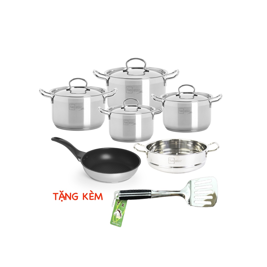 Bộ nồi chảo cao cấp Fivestar 6 chiếc nắp inox , 3 đáy dùng được bếp từ gas , hồng ngoại , bếp từ , tặng 1 sạn inox