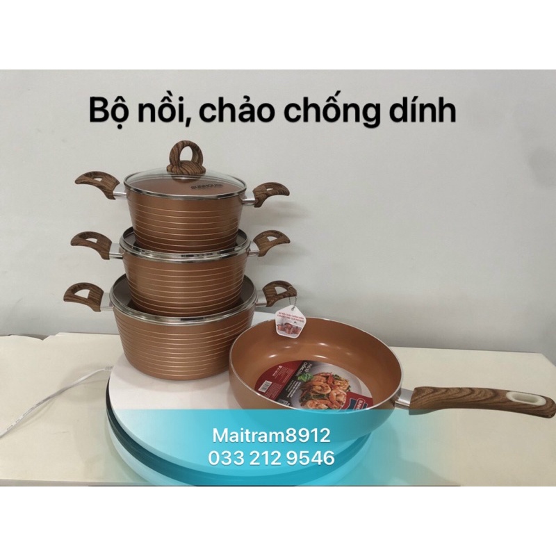 Bộ nồi, chảo Ceramic chống dính Sunhouse SHG2004MCA, đáy từ, dùng được bếp từ (có bán lẻ)