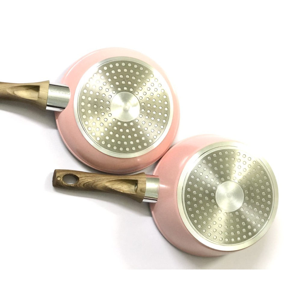 Bộ Nồi Chảo Cho Bé Ăn Dặm Chống Dính 16cm Cao Cấp, Vân Đá Hoa Cương Hồng, Đáy Từ Dùng Mọi Loại Bếp