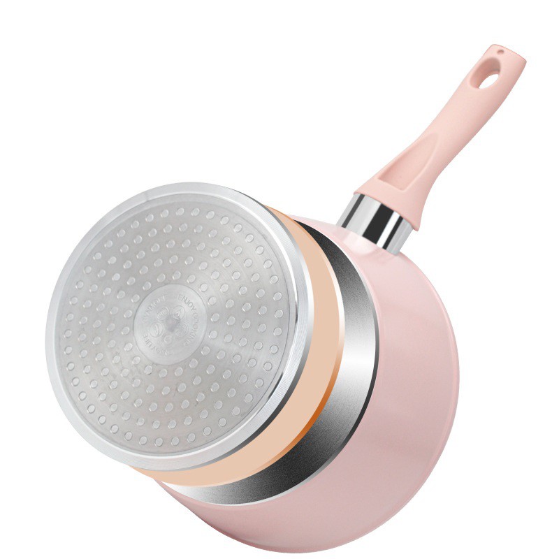Giới thiệu Bộ Nồi Chảo Cho Bé Ăn Dặm Chống Dính 16cm Cao Cấp, Vân Đá Hoa Cương Hồng, Đáy Từ Dùng Mọi Loại Bếp