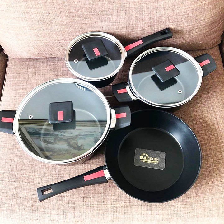 - Vật liệu Bộ Nồi Chảo Chống Dính Ceramic Đáy Từ Hợp Kim Nhôm Kimscook Paella KCP-4 Xuất Khẩu Pháp Khác với những loại chảo từ sản xuất theo công nghệ dập khuôn hiện nay, chảo từ Kims Cook được chế tạo bằng chất liệu nhôm hợp kim A3003 cao cấp không ra ten an toàn cho sức khỏe
